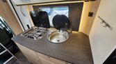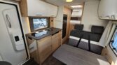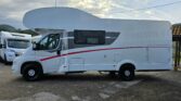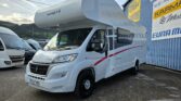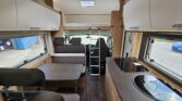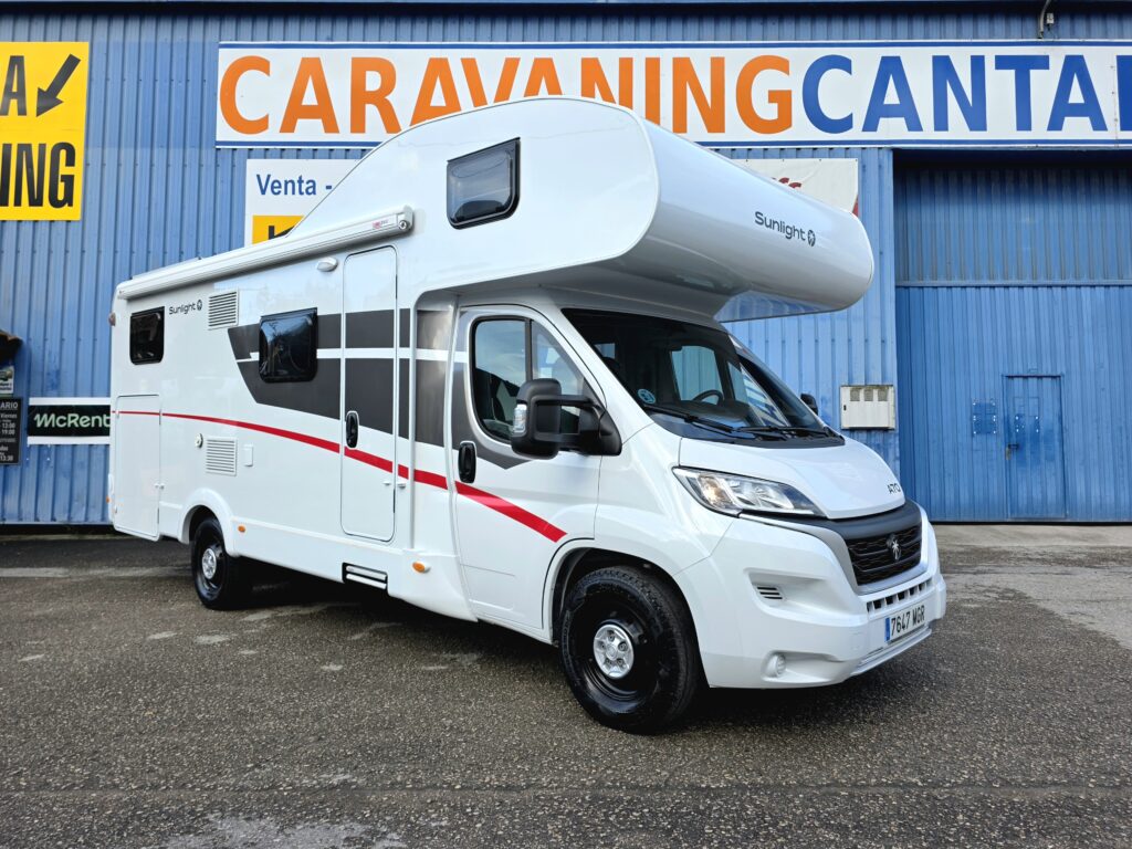 La Sunlight A70 es una autocaravana capuchina ideal para viajar en familia o con amigos, con capacidad para seis personas tanto para dormir como para viajar. Cuenta con dos camas grandes, una en la capuchina delantera y otra en la parte trasera, además de una cama adicional que se forma en el salón. Su interior ofrece una distribución cómoda y práctica, con una nevera de gran capacidad, un amplio baño con ducha separada, acceso directo al garaje desde el habitáculo y un garaje de gran tamaño con portón lateral de 1,20 metros. Todo pensado para disfrutar al máximo de cada escapada.